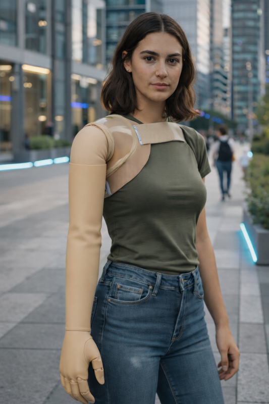 Sur le plan esthétique, la prothèse redonne une ligne d’épaule symétrique, facilite l’intégration vestimentaire et peut être recouverte d’une finition cosmétique réaliste.